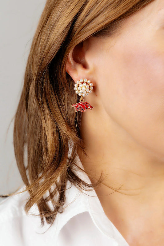 RJ Arkansas Pearl Cluster Dotted Enamel Drop Earrings