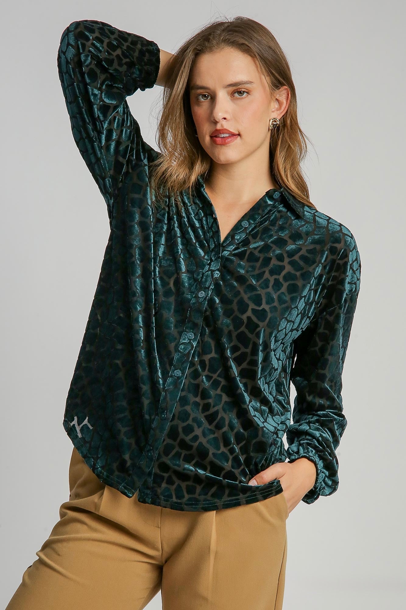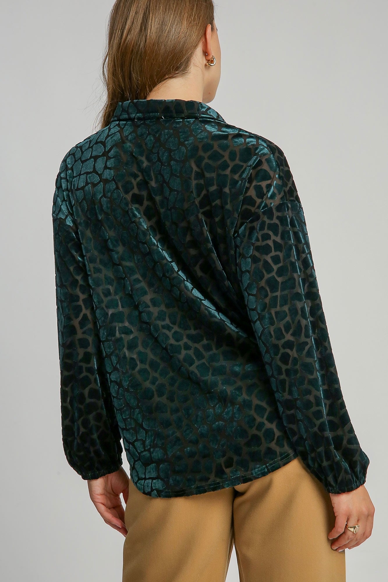 ANIMAL BURNOUT VELVET BUTTON DOWN TOP