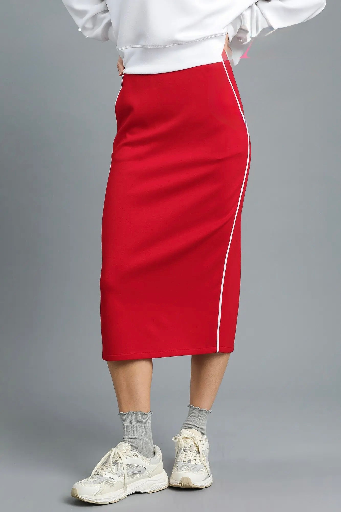 Side Stripe Knit Midi Skirt